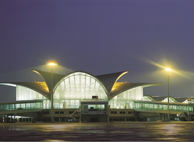 The project is 1045m long in North and south, 99.5m-110.5m wide in East and west, 80m wide above ground, with a total construction area of 220,000 square meters. The project includes membrane roof and six steel latticed shells "Sunshine Valley".Sunshine Valley structure system is a single-layer grid composed of triangular meshes. The steel structure of Sunshine Valley is conical in shape, like a loudspeaker facing the sky, and its section is a hyperboloid with variable curvature. The height of reticulated shell is 41m, the steel consumption is about 300 tons, the number of reticulated shell joints is about 10 600, and the area of special-shaped curtain wall is about 35,000 square meters.