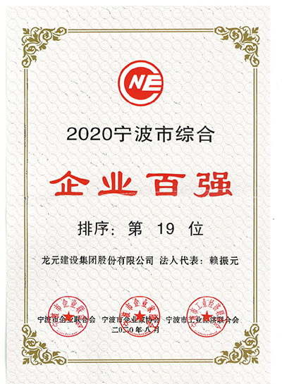 8月27日,2020寧波市企業家活動日暨百強企業頒獎活動舉行,省委副書記、市委書記鄭柵潔作批示,市委副書記、市長裘東耀出席活動并作講話。活動現場,由寧波市企業聯合會、寧波市企業家協會、寧波市工業經濟聯合會共同發布的“寧波百強企業榜”正式揭曉。龍元集團榮登“2020寧波市綜合企業百強榜”,位列19位,較去年上升一位,居建筑類企業榜首。
