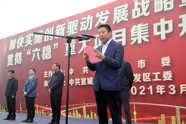 孔曉宏在講話中指出,本次開工動員會是加快實施創新驅動戰略的具體行動,是確保“十四五”發展開好局、起好步的重要舉措,更是全市狠抓項目、擴大投資、穩定增長的動員令。他表示,項目建設是經濟工作的主抓手,要早日把今天的新開工項目轉化為明天的現實生產力和發展競爭力,以優異成績慶祝建黨100周年。