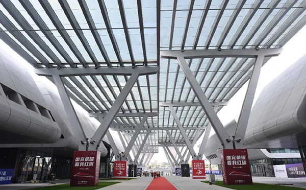 大地鋼構(gòu)作為鋼結(jié)構(gòu)專業(yè)施工單位,在保證施工質(zhì)量和安全的前提下,攻克了相貫線節(jié)點桿件工藝復雜、厚板焊接及焊縫要求高等施工難點。項目建成投用以來,陸續(xù)成功舉辦了國際車展、食交會等多場展會,可謂是當之無愧的“新晉”地標!