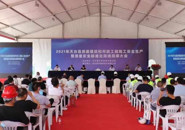 625日,2021年天臺縣房屋建筑和市政工程施工安全生產暨質量安全標準化現場觀摩會在龍元建設集團浙江天臺安置房PPP項目部舉行。本次活動由天臺縣住房和城鄉建設局主辦,龍元建設集團股份有限公司承辦。天臺縣住建局局長龐奎出席并致辭,縣公安局、應急局、交通局、水利局、執法局、消防救援大隊、始豐街道等分管領導參加,縣房開企業、施工企業、監理單位等同行企業,以及媒體代表等300余人走進施工現場,深入學習該項目在安全文明施工標準化、智慧工地建造等方面的優秀做法和經驗。