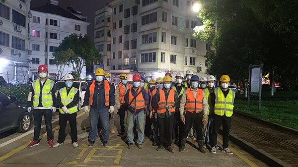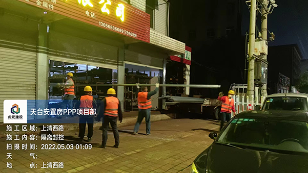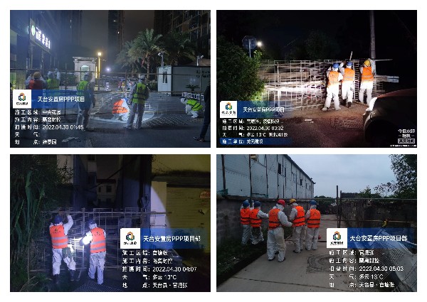53日凌晨,項目工人再次響應號召,前往援助城區(qū)街道落實封閉隔離措施。