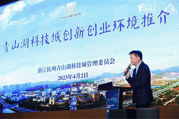 青山湖科技城黨工委副書記,管委會副主任黃寅做開場致辭并做青山湖科技城推介,青山湖科技城作為融杭橋頭堡、發(fā)展主平臺、創(chuàng)新主引擎,是杭州城西科創(chuàng)大走廊唯一承接先進制造業(yè)布局的平臺,正著力打造創(chuàng)新策源地。