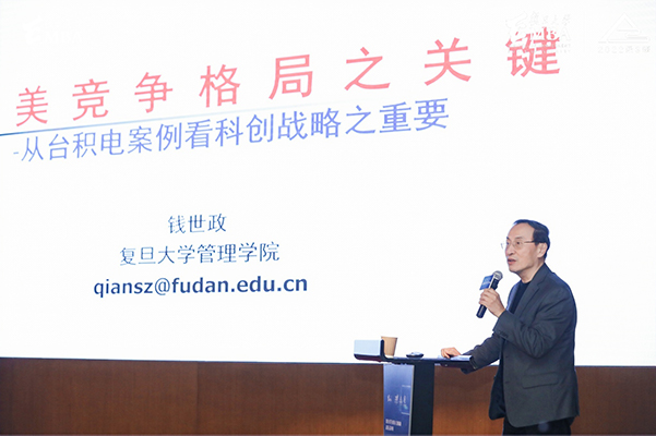 復旦大學管理學院教授錢世政圍繞“中美競爭格局之關(guān)鍵——從臺積電案例看科創(chuàng)戰(zhàn)略之重要”的主題進行了主旨演講。他表示在科技驅(qū)動創(chuàng)造價值的時代,一個企業(yè)的價值取決于其所處生態(tài)的位置,芯片之爭的本質(zhì)是科技之爭,國家發(fā)展戰(zhàn)略之爭。