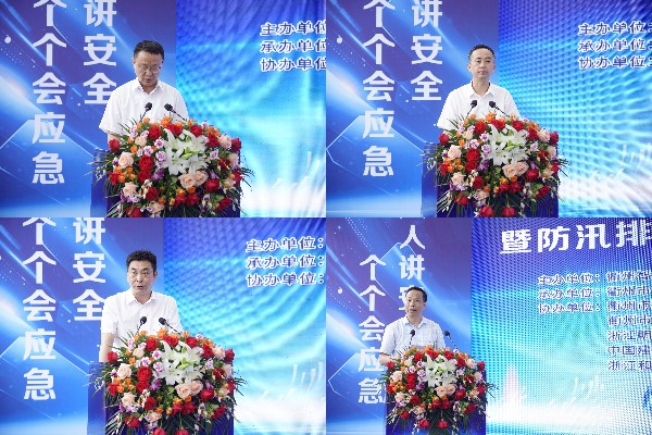 這是衢州市2023年安全生產(chǎn)月防汛排澇和消防救援應(yīng)急演練現(xiàn)場(chǎng)。本次活動(dòng)由衢州市智慧新城管理委員會(huì)、衢州市住房城鄉(xiāng)建設(shè)局主辦,龍?jiān)瘓F(tuán)承辦。衢州市住房和城鄉(xiāng)建設(shè)局黨委委員、副局長吳群,衢州市慧城產(chǎn)業(yè)發(fā)展集團(tuán)有限公司黨委書記、董事長、總經(jīng)理陳衍華,衢州智慧新城管理委員會(huì)安全應(yīng)急部部長黃斌出席活動(dòng)并發(fā)言。項(xiàng)目各建設(shè)單位、施工單位、監(jiān)理單位共200多位代表參加活動(dòng)。龍?jiān)瘓F(tuán)浙江公司副總經(jīng)理夏柏生代表集團(tuán)作表態(tài)發(fā)言。